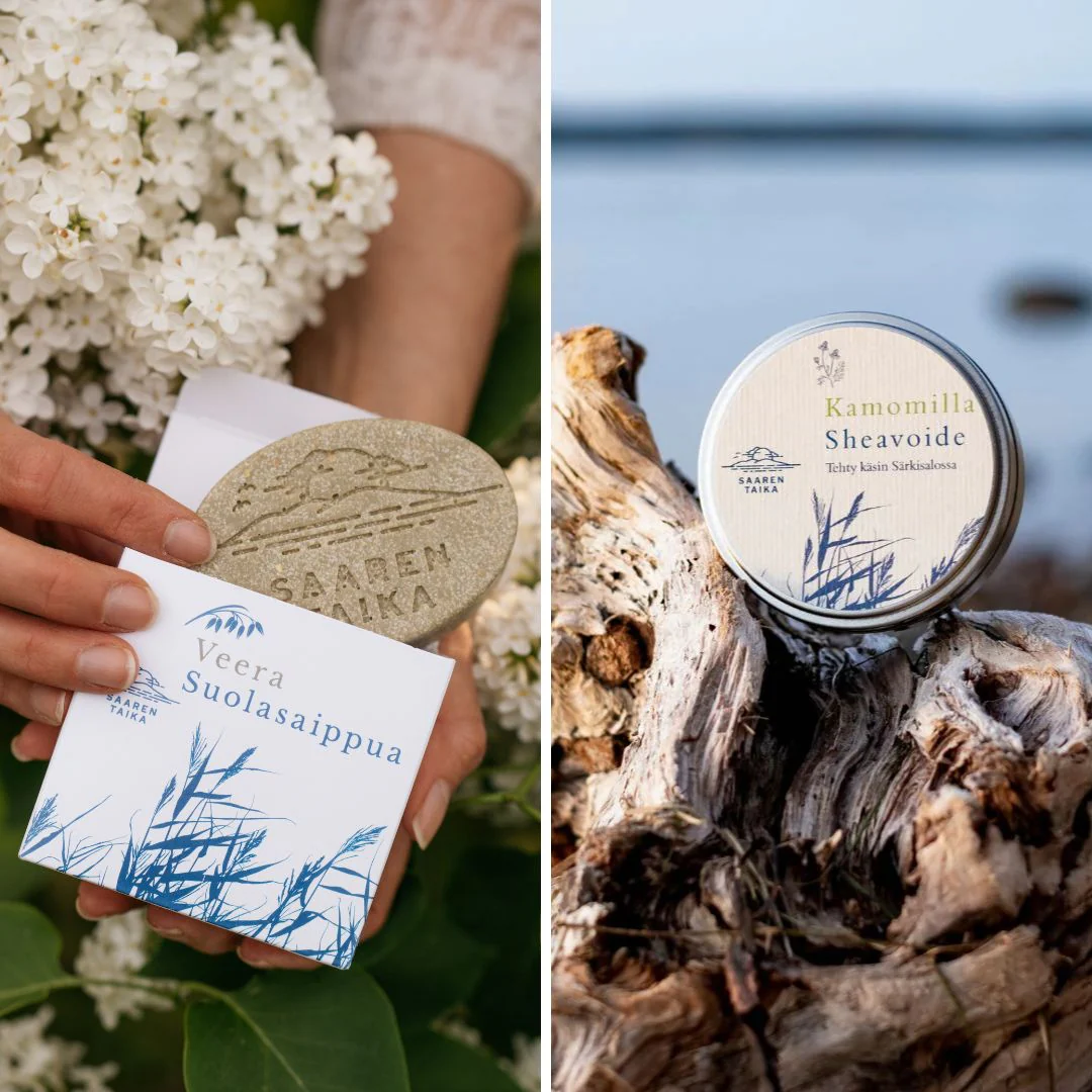 Psori-iholle sopiva settimme sisältää myös kutinaa nopeasti rauhoittavan Kamomilla Sheavoiteen, joka auttaa suojaamaan kuivaa tai ärtynyttä ihoa. Kamomilla Sheavoide on syntynyt Saaren Taika tuotekehittäjän oman atooppisen ekseema-ihottuman hoitoon.