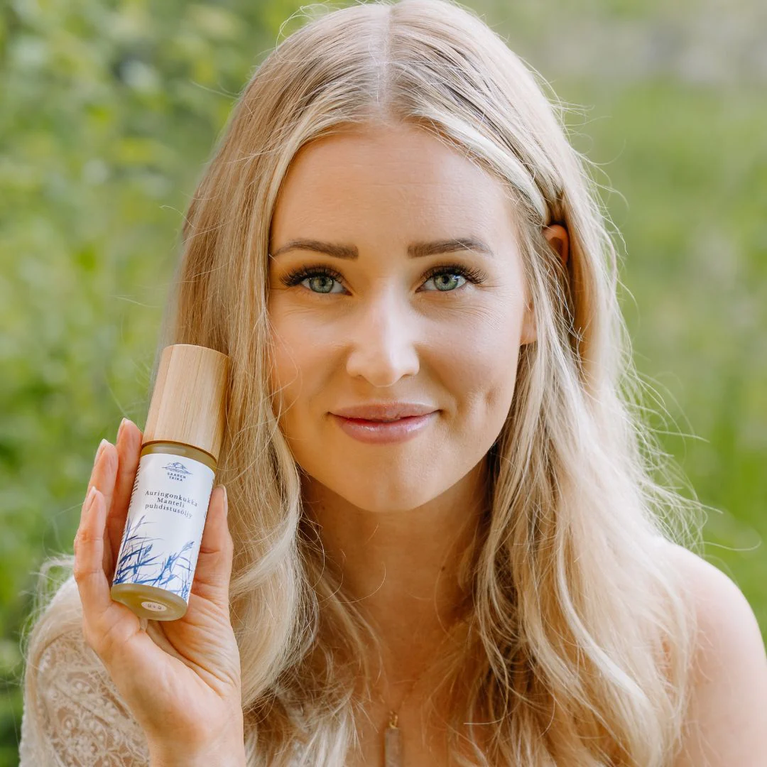 Saaren Taika Auringonkukka Manteli puhdistusöljyllä poistat hellävaraisesti, mutta tehokkaasti lian, meikin ja aurinkovoiteen kasvoiltasi samalla, kun se hoitaa ihoasi tehokkailla luonnollisilla kasviöljyillä. Öljyputsari poistaa myös vedenkestävän meikin helposti!